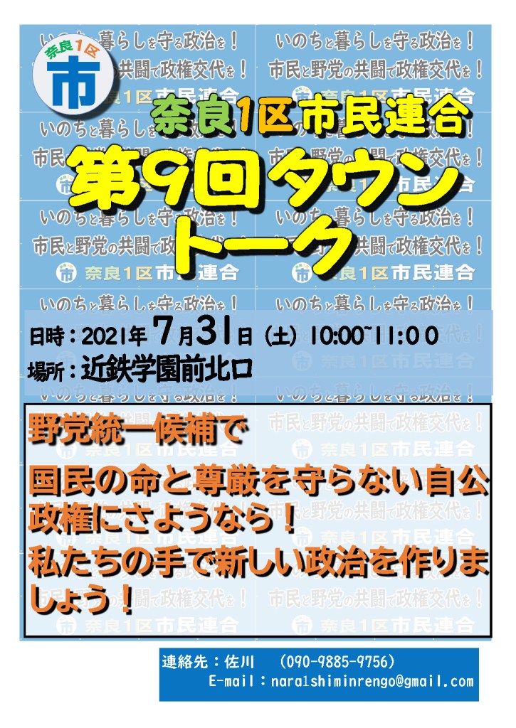 7月31日10時から学園前北口で第9回タウントークを行います。