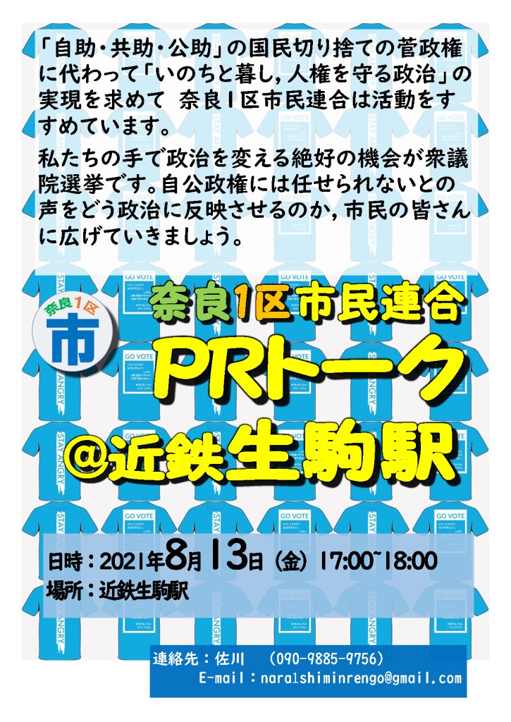 8月13日(金)17時~18時 PRトーク 近鉄生駒駅 投稿者:奈良1区市民連合2021年8月9日2021年8月20日カテゴリー:スケジュールタグ:野党共闘、菅政権、衆議院選挙、政権交代、政治を変える 8月13日(金)17時~18時に、PRトークを近鉄生駒駅で行います。ぜひご参加ください。 共有: X で共有 (新しいウィンドウで開きます) X Facebook で共有 (新しいウィンドウで開きます) Facebook Threads で共有 (新しいウィンドウで開きます) Threads いいね 読み込み中… 関連