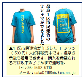 奈良1区市民連合のTシャツができました