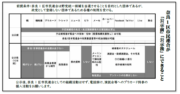 奈良1区市民連合が「公示前」「公示後」にできること