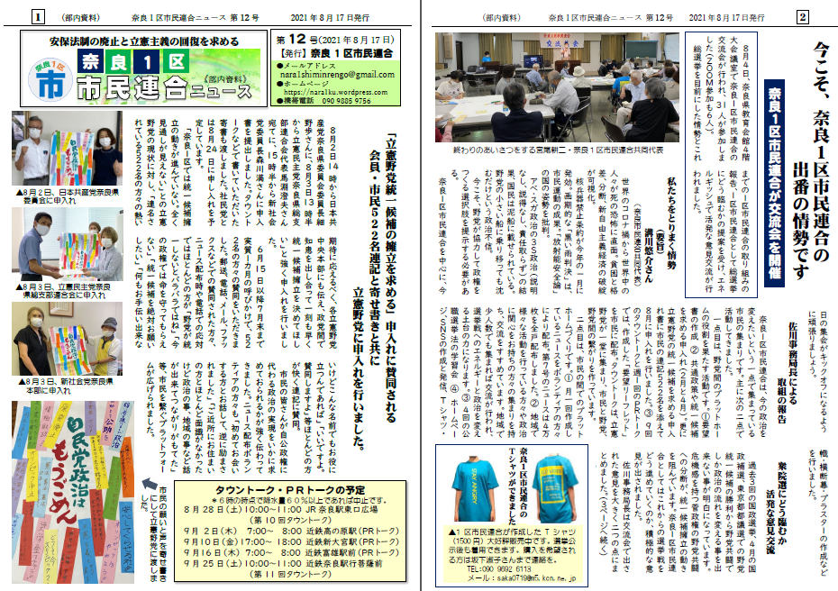 奈良1区市民連合発行ニュース12号のPDFファイルダウンロード