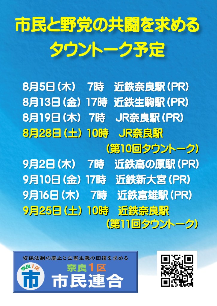 8月28日(土)10時 JR奈良駅前(第10回タウントーク)