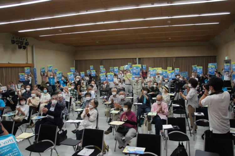 「立ち見の出る満席の会場に政権交代への期待の大きさを実感しました。そろい踏みのところで,もっと盛り上がる演出が出来ればよかったですね。統一候補の発表の日にはぜひ2回目の決起集会を」