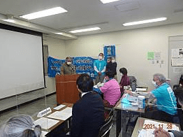 開会にあたって共同代表の坂下淑子さんは今回の総選挙の取り組みをふり返り、馬淵氏勝利を勝ち取ったすべての皆さんの奮闘の労をねぎらうと共に執拗な「共闘」攻撃や岸田政権の危険性にも触れ、「次の参院選にむけて態勢・準備を整えていきましょう」と呼びかけました。