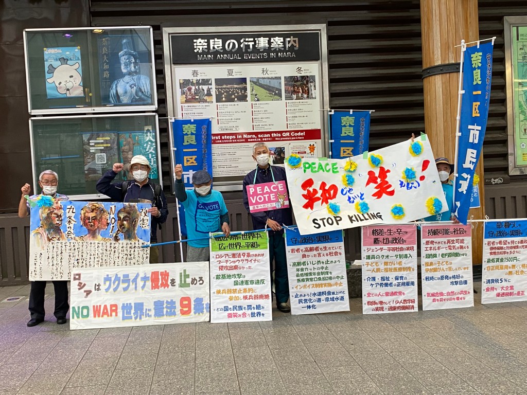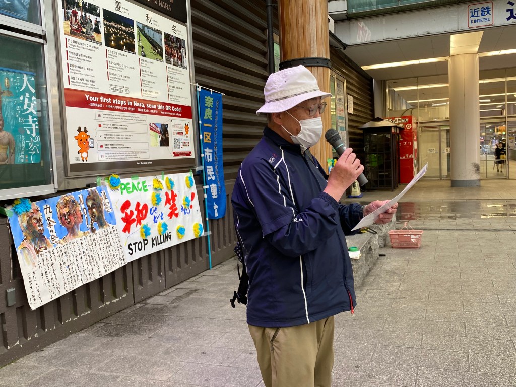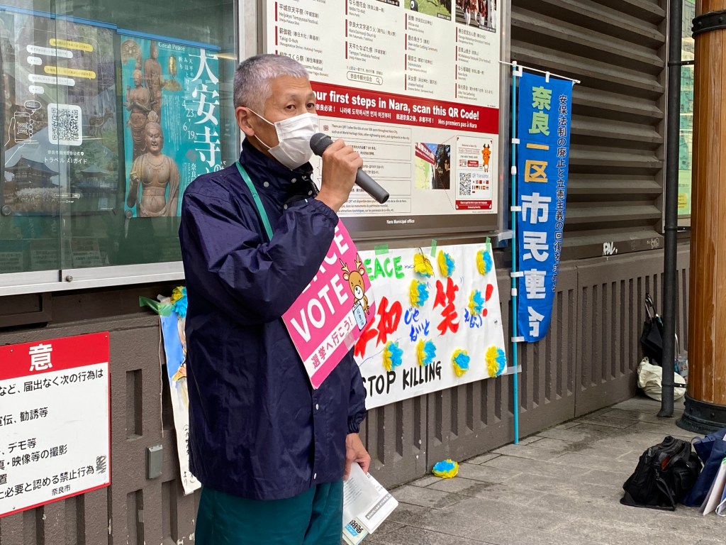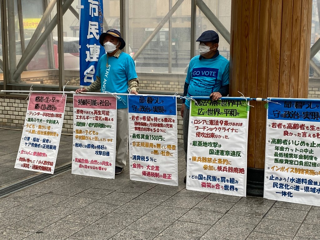 今回は民商の霜取さんにトークしていただきました。インボイス制度の実施の延期・中止を訴えました。この制度は零細企業や商店を廃業に追い込む内容です。近くのコンビニや商店にチラシを届けましょう。