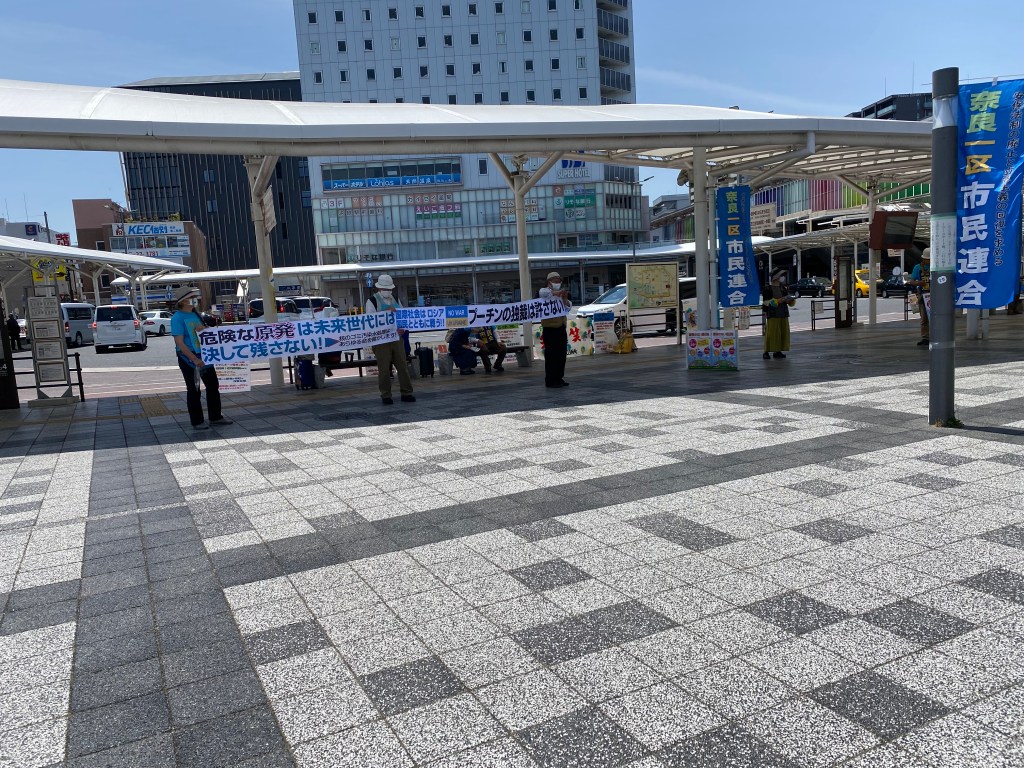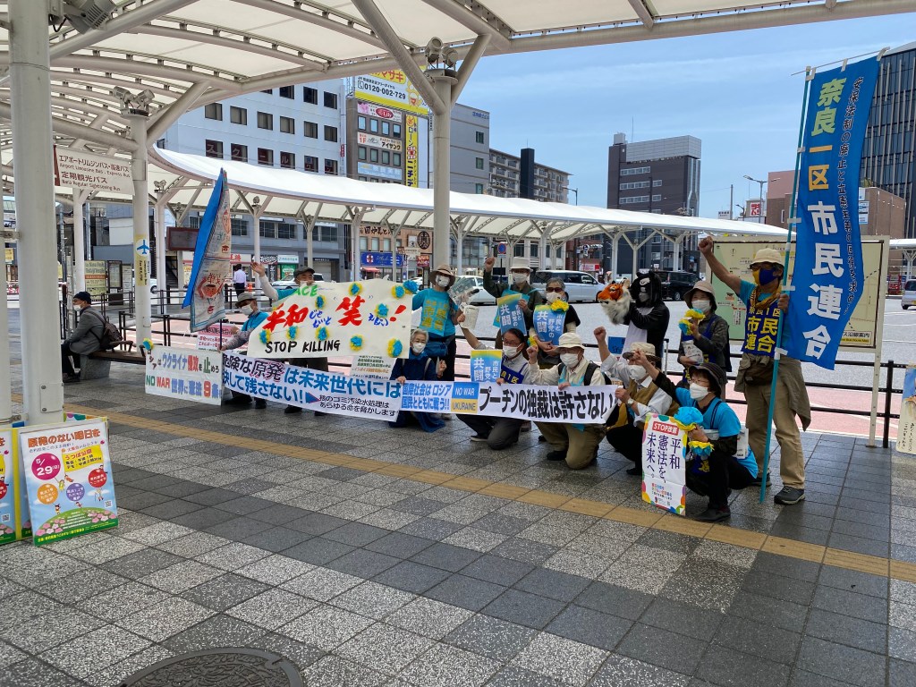 憲法九条やノーモア沖縄戦、ウクライナの事、原発がいかに危険か、野党統一の訴え、戦争で亡くなる事はあってはいけない、水道問題、市民の要望などなど皆さんの訴えが素晴らしかったです。参加者がシャボン玉を皐月の青い空に飛ばしていました。憲法9条が世界に広がっていって欲しいと思います。世界中から紛争と戦争をなくしたい、その為には、参議院選挙で憲法9条を守る議員を選びましょうと通行人に訴えました。観光客の人が「奈良でもやっているのですね」とエールをくれたそうです。