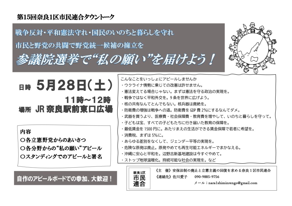 戦争反対・平和憲法守れ・国民のいのちと暮らしを守れ