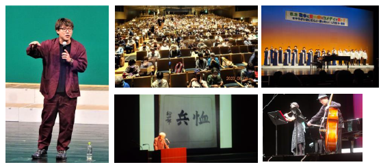 2023年5月3日の「憲法記念日」に、「戦争に近づく今をコメディで笑う!せやろがいおじさんと一緒に考えよ~LIVE in 奈良」を行いました。憲法と平和の大切さを訴えるコメディ、歌、器楽演奏、朗読、沖縄の写真展など多彩な内容でした。