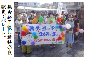 最後に、奈良1区市民連合共同代表の佐川愛子さんは、「5月3日の憲法記念日には、ぜひ奈良100年会館へ。緊急事態条項はナチスドイツへの道。食い止めよう」と訴えました。