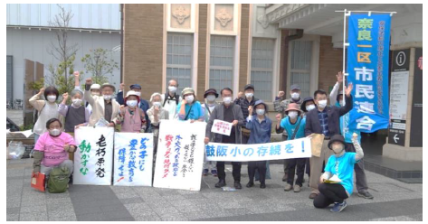 横田利孝さんは、「世界遺産の奈良公園の中にある鼓阪小を佐保小に統合するという奈良市の計画は『統廃合ありき』ですすめられている。危険な通学路に何の対策もないことを副市長も認める議会答弁も。反対署名は4000筆を超えた。さらに署名へのご協力をお願いしたい」と訴えました。