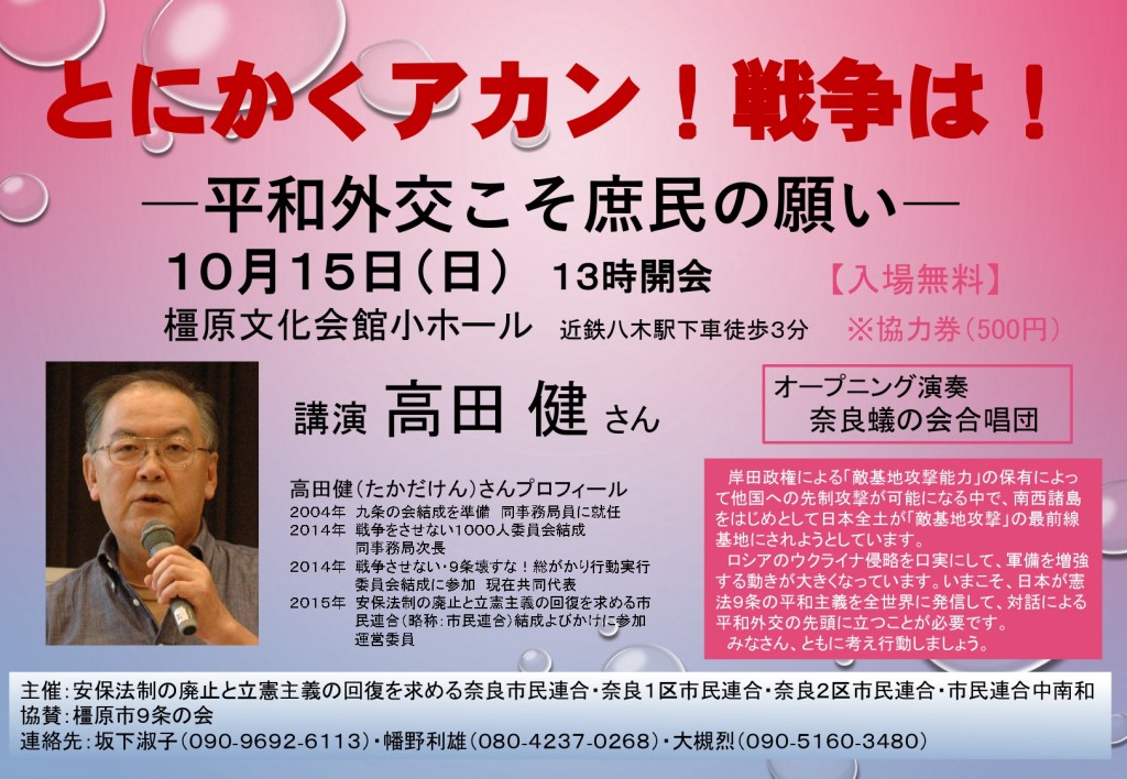 主催:安保法制の廃止と立憲主義の回復を求める奈良市民連合・奈良1区市民連合・奈良2区市民連合・市民連合中南和