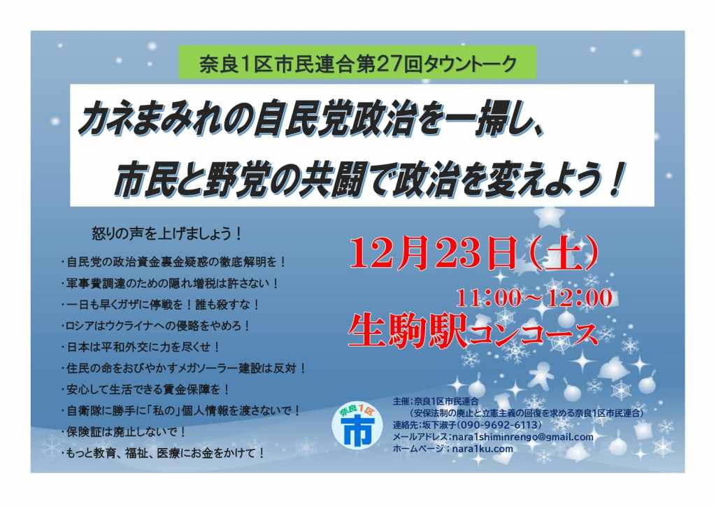 12月23日(土)11時~12時 近鉄生駒駅コンコース