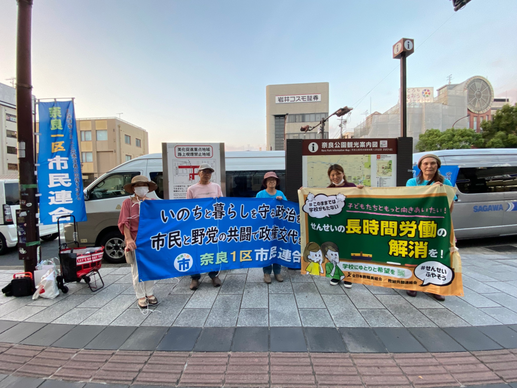 *第2回目 10月1日(火)16時半から17時半 近鉄奈良駅では「教育の問題」についてトークをしていただきました。教育現場の実態、防衛予算の半額の教育予算など政治の貧困の訴えに聞き入っている通行人も。行いました。市民との対話で奈良1区市民連合のニュースを読むとおしゃっていただきました。