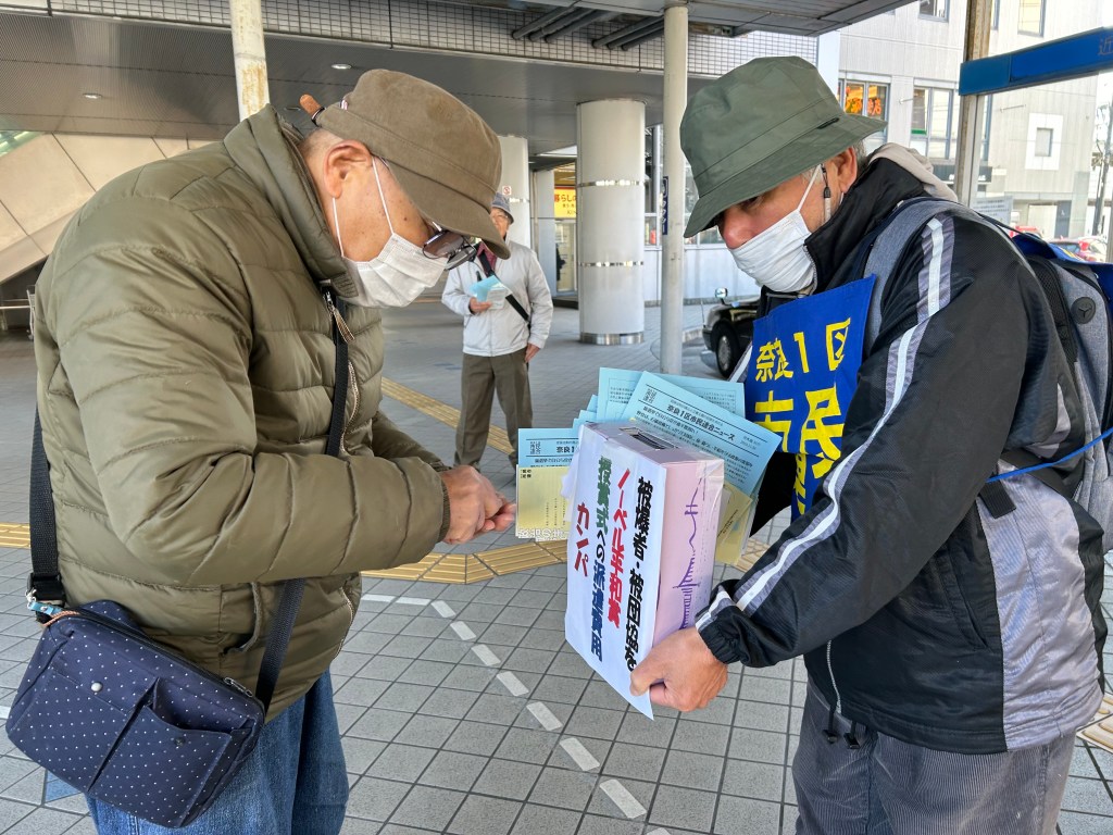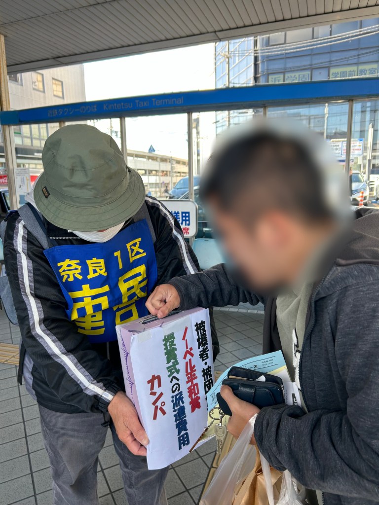 ノーベル平和賞受賞に参加される被団協の皆さんの費用を訴えるカンパには5000円が、核禁止条約の批准を求める署名にも「まず日本が批准しないとね」と言いながら署名を。