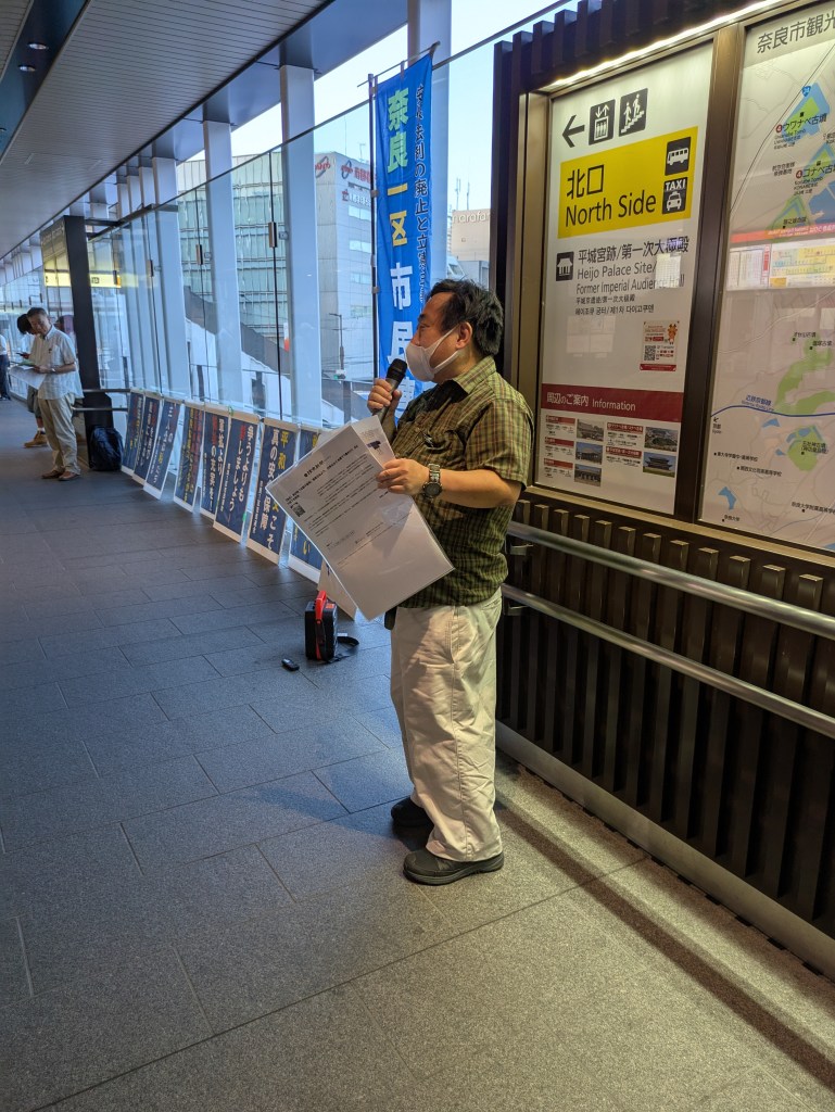 ●奈良のすぐ北にある、祝園弾薬庫に敵基地攻撃能力を持つ長射程ミサイルが配備される。工事が8月中頃から始まる。住民の命が守られるかについての回答がない。