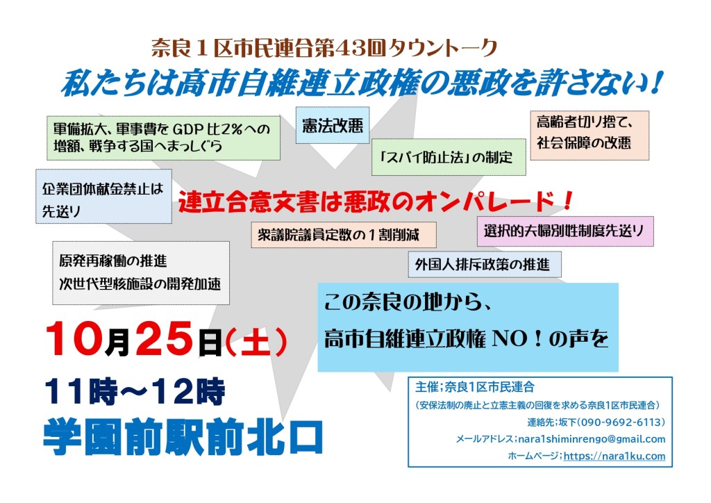 この奈良の地から、高市自維連立政権NO!の声を!