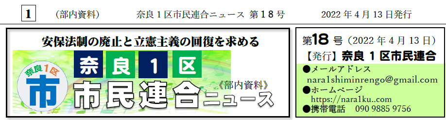 2022年4月13日発行 野党統一候補の擁立を 奈良1区・2区・中南和市民連合が共同で県内立憲野党に要請と懇談続きを読む “奈良1区市民連合ニュース18号発行”