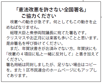 「憲法改悪を許さない全国署名」ご協力ください