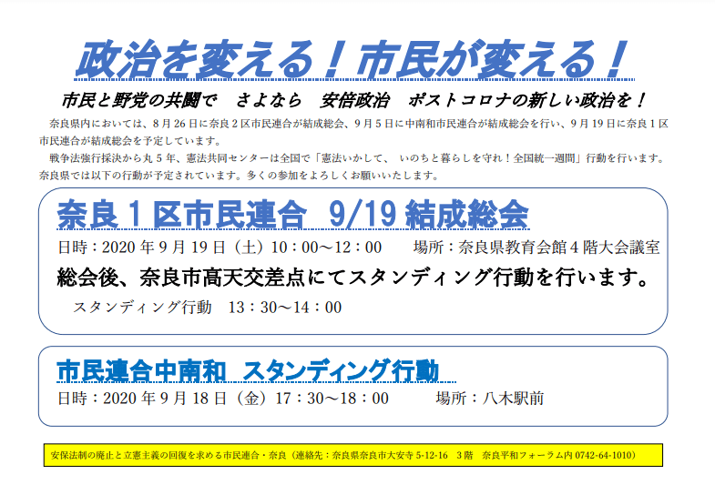 2020年9月19日 スタンディング 市民連合奈良& 奈良1区市民連合