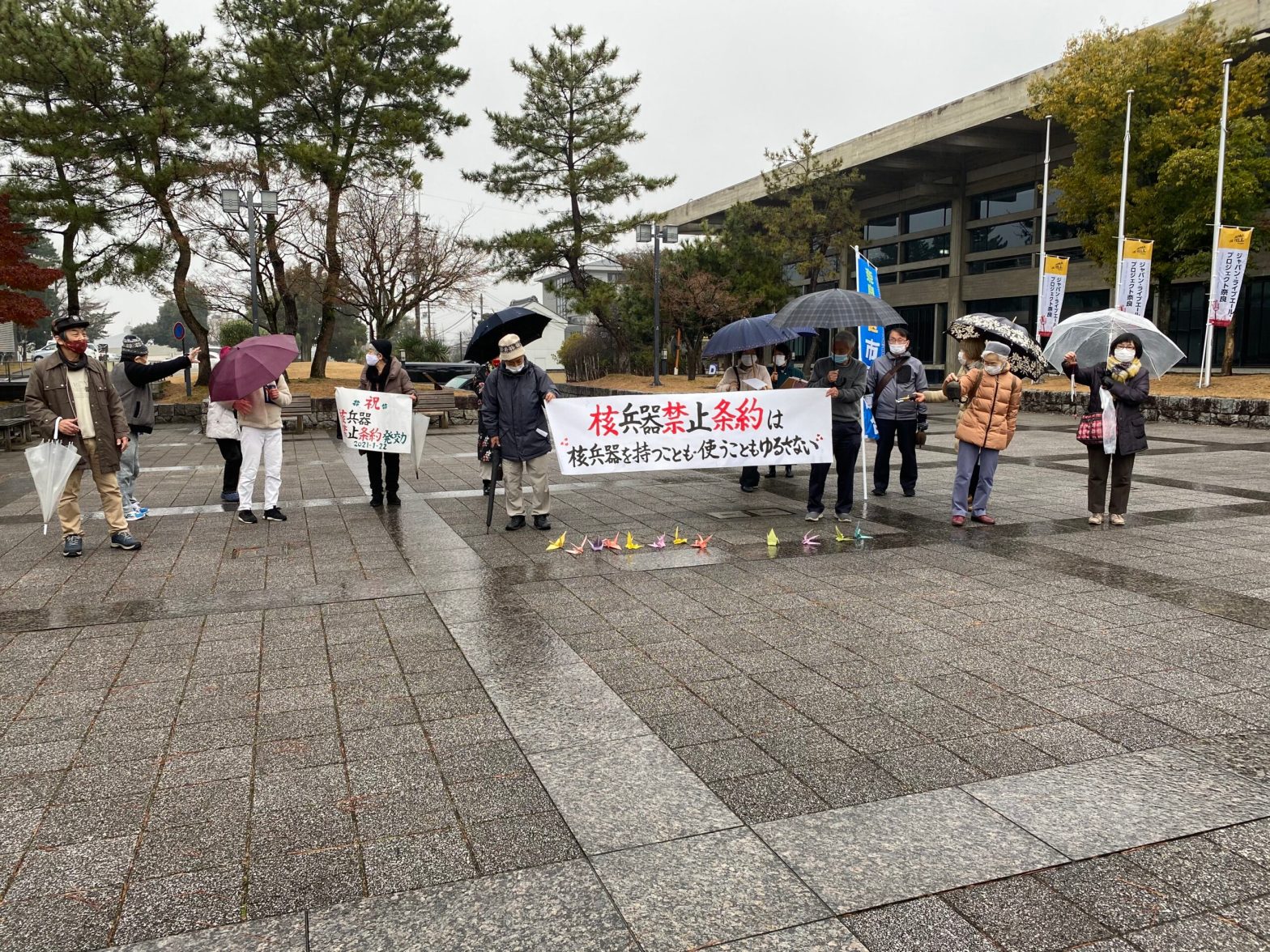 2021.1.22 祝 核兵器禁止条約発効 奈良県文化会館前広場に集まった市民は折鶴を散りばめ,「核兵器禁止条約は核兵器を持つことも使うこともゆるさない続きを読む “2021.1.22 祝 核兵器禁止条約発効 ”